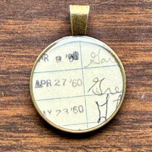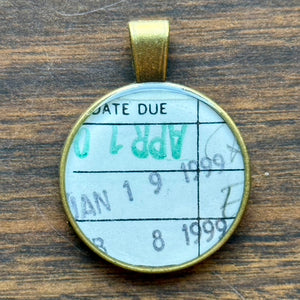 Book Lover Necklace -- Date Due January 19 (upside down April)