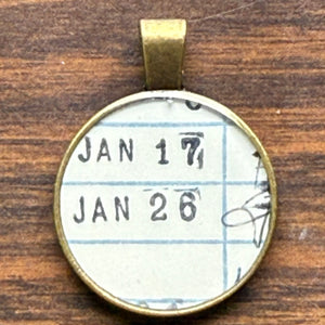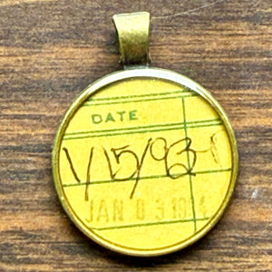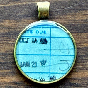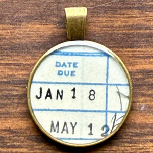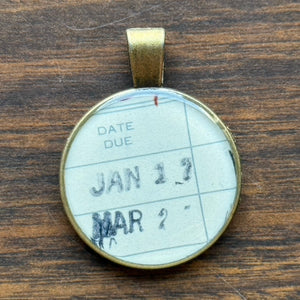 Book Lover Necklace -- Date Due January 19 (upside down April)