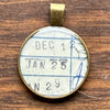 A perfect gift for any librarian, teacher, or literary soul, this one-of-a-kind pendant is crafted from authentic date due cards salvaged from books we upcycle into journals. Each piece is a tiny slice of printed history—and a thoughtful way to mark a meaningful moment.