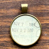 Pendant: ~1" round, vintage bronze-style setting, sealed in glossy resin